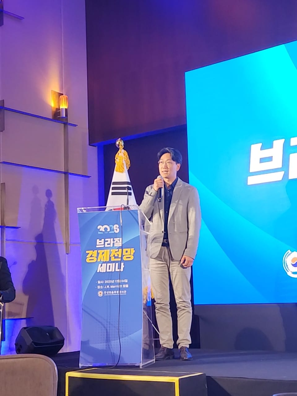 채진원 총영사는12월 4일(목), 우리진출기업 지원의 일환으로 '2026 브라질 경제전망 세미나'를 개최한 바, 브라질 경제부, 노동부, 경제학자 등 전문가들이 참석하여 주재국 노동, 경제, 환율, 한류 문화 현황 등에 대해 발표하고 쟁점 사항에 대해 토론하였습니다.